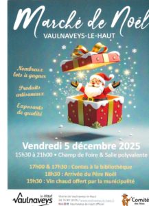 Comme chaque année, notre traditionnel marché de Noël se tiendra sur la place du champ de foire vendredi 5 décembre. Des dizaines d’exposants et le père Noël nous a assuré sa venue.