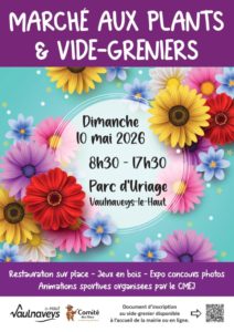 Comme chaque année, la commune de Vaulnaveys le haut et le comité des fêtes organisent la traditionnelle foire aux plants et vide greniers le dimanche 10 mai. Plus d’informations sur l’affiche ci-dessous : AFFICHE Et, pour vous inscrire, le flyer ci-dessous : FLYER (fiche d’inscription)